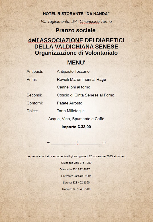 | 30 novembre 2025 | Hotel Ristorante «Da Nanda» Chianciano Terme |